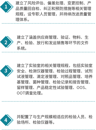 微生物室分為無菌檢查室、微生物限度檢定室、陽性菌室、效價室。